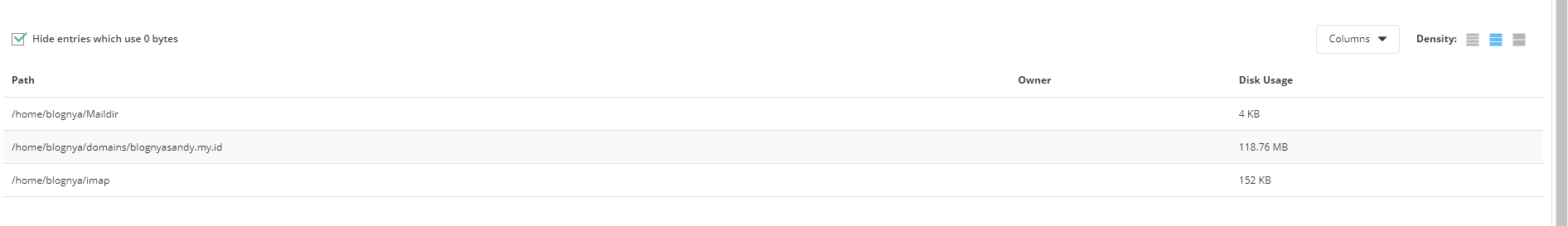 5. Dan bisa dilihat disini, mana saja yang menggunakan Diskspace yang terbesar